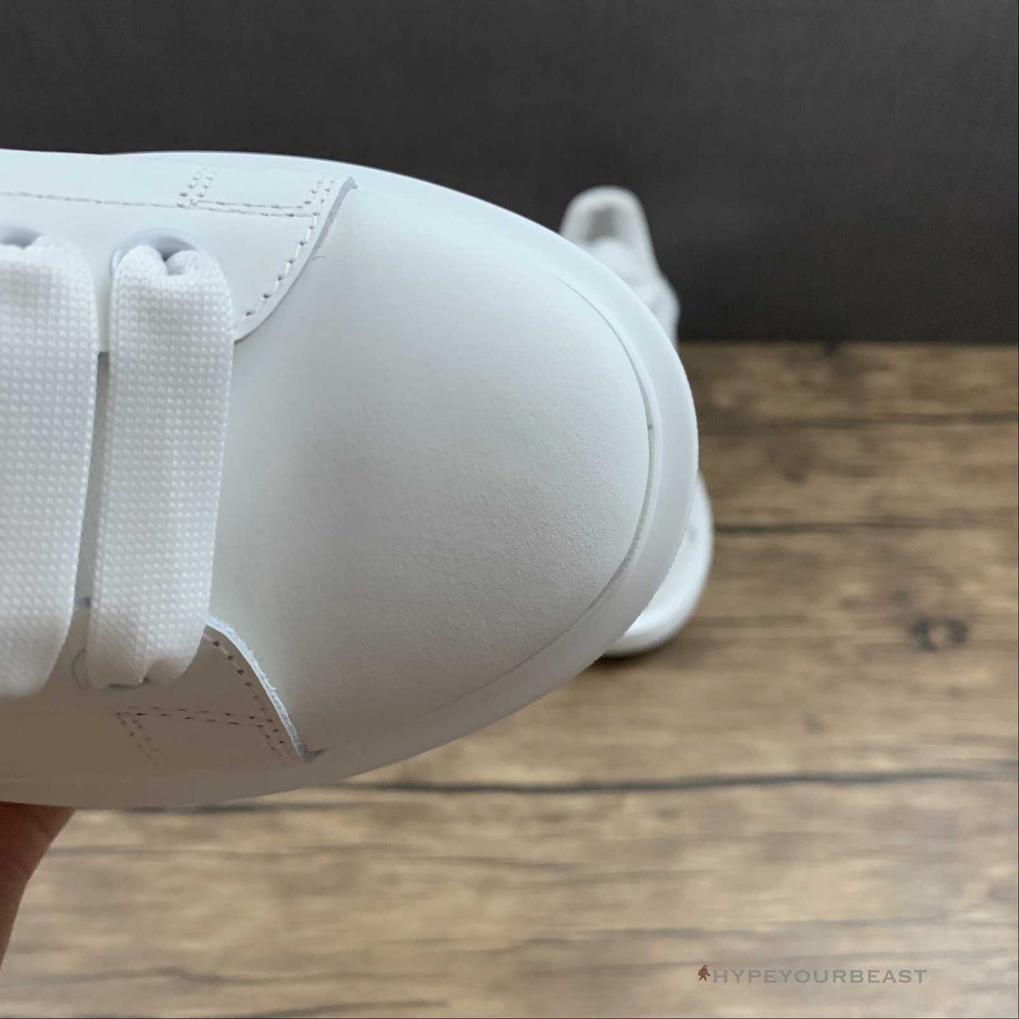 White kicks with gold accents are the main features of Alexander McQueen White / Gold. These sneakers give you an all-white sneakers appeal as it offers you a comfortable footwear experience. Alexander McQueen White / Gold brings out white leather upper with gold touch on its heel tab and ankle collars. You can also proudly flaunt these sneakers due to their elegantly labeled brand name on heel and tongue tabs.