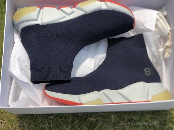 Unlike the typical Balenciaga Sock Sneakers with the black colorway, Balenciaga Speed Trainer Blue Marine includes blue marine, white, and red color combinations. It has neat material in blue material which was made from 3D knitting. This pair also includes white midsoles and neon red rubber outsoles. Another special feature of Balenciaga Speed Trainer Blue Marine is its double initial logo at the heel. Grabbing one of these sneakers can guarantee comfort, easy, and cushy performance.
