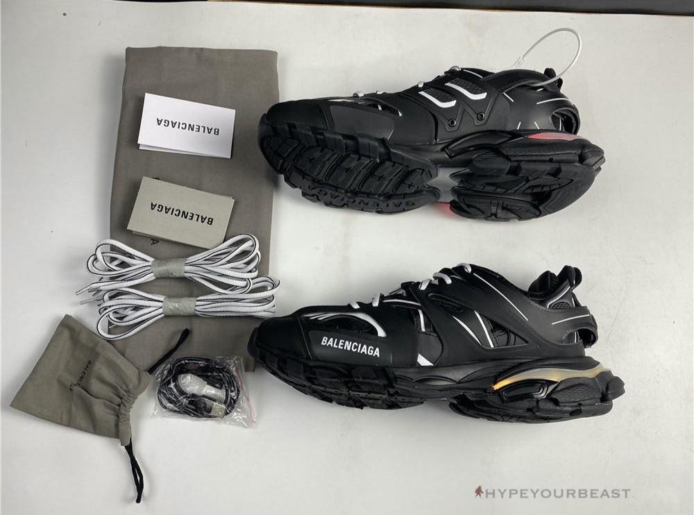 Classic all-black sneakers with LED features are the most interesting effects for the Balenciaga Track Sneakers 3.0 Light Up Sole. It gives bright and fun colors once worn in the dark. This LED material shows blue, green, yellow, and white colors and it is installed in the heels of the sneakers to look incredibly floating while worn. The black-out sneakers were made from nonleather materials such as nylon and mesh. Its neat and detailed layering made the pair elegantly styled. Grab one of these sneakers and enjoy its unique and creative light up sole features on your feet.