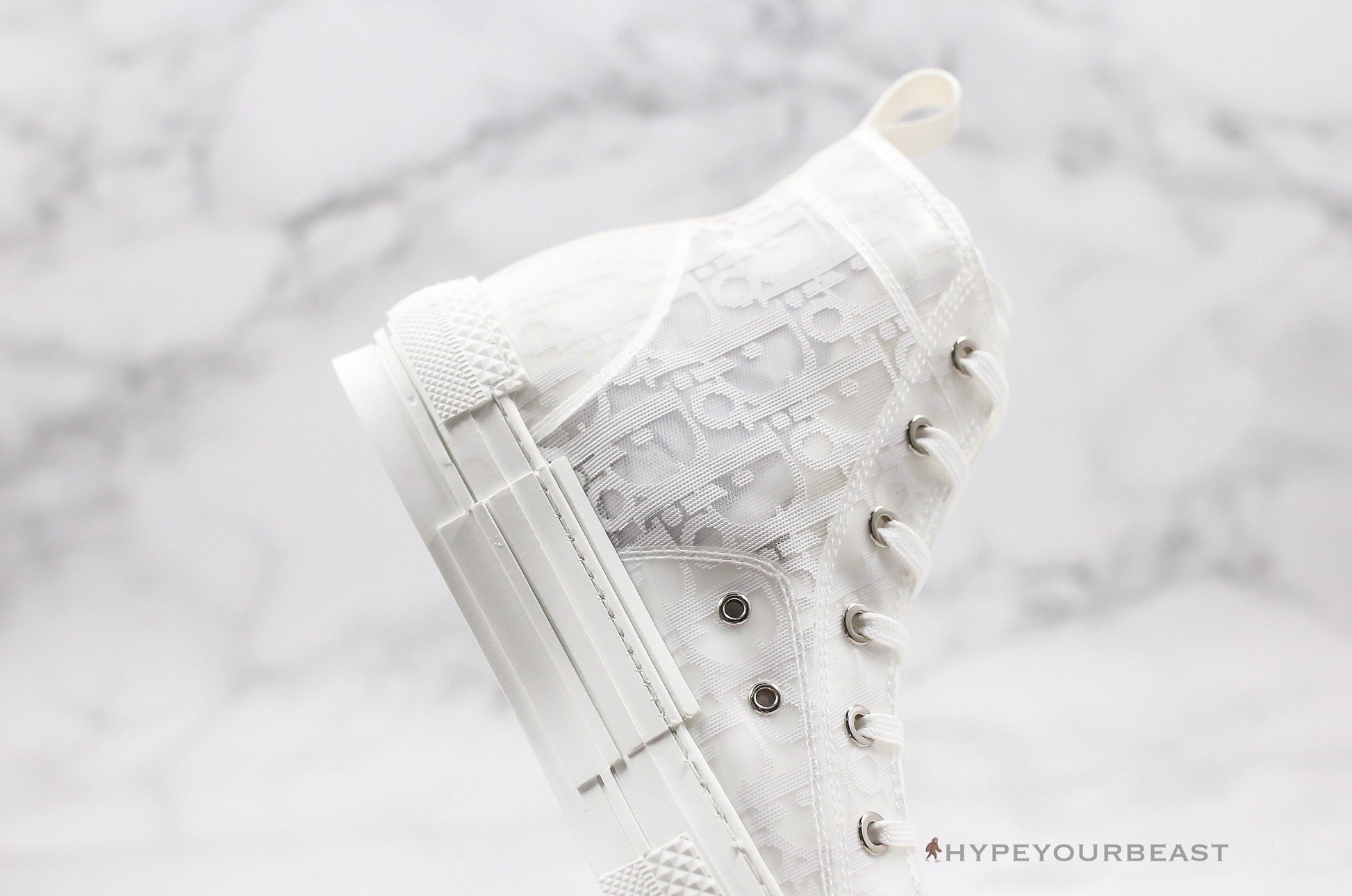 Elegant white sneakers with compelling details are the composition for the White Dior 23 Oblique. It has white essential elements like the upper bases, eyelets, lace-up front, rubble shoes, and toe caps. This all-white feature of Dior B23 High Oblique Transparent brings out another transparent paneling with the Dior brand label and logo on its side panel. Wearing these magnificent sneakers gives you a chance to wear any outfit for every errand of the day.