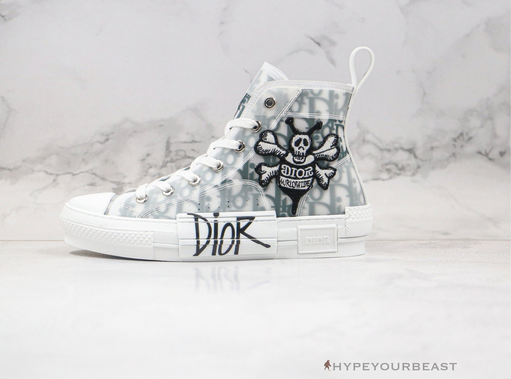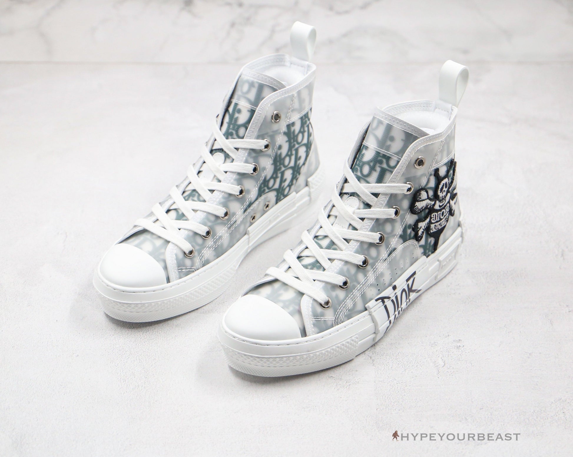 Dior 23 nailing the two-tone sneakers with the iconic embroidery logo through its Dior B23 High Top Shawn Bee Embroidery Patch pair. It includes black Dior labels with translucent white and oblique canvas overlay. The pair even highlights the Shawn Bee Embroider patch at the midfoot which carries the Dior label too. But then, another Dior name appears on the white rubber midsole in a black fun lettering. Collect these sneakers and be unique and fantastic in one.
