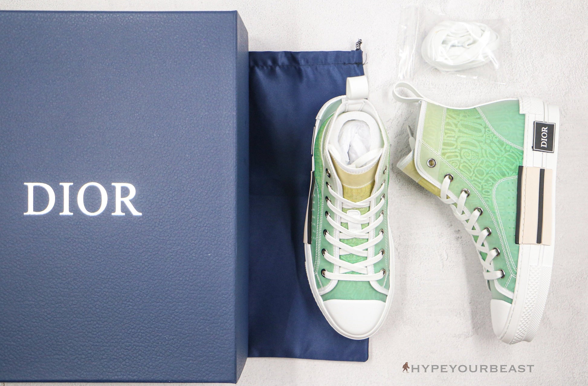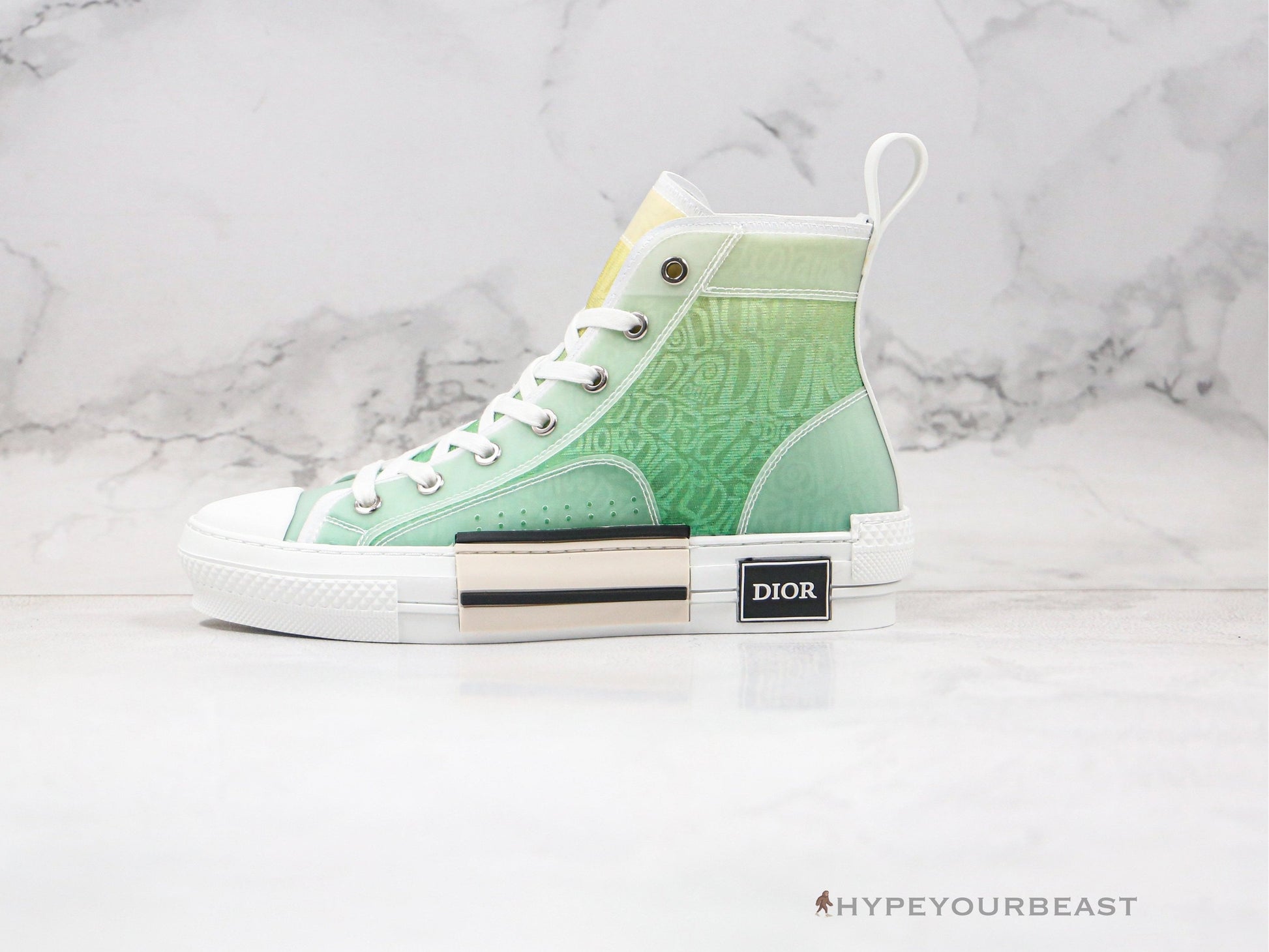 The wild and terrific collaboration of Shawn Stussy x Dior resulted in an innovative and creative pair of Dior B23 High Yellow Green. These sneakers offer yellow and green gradients on the Dior canvas with white translucent overlays. Dior B23 Yellow Green caters to another multicolor feels as it portrays a contemporary look on your feet. In addition to its minimalist look is the white rubber outsole with black and tan patch and black and white Dior logo. Collect one of these sneakers and be gorgeously amazing with the yellow and green colorway.