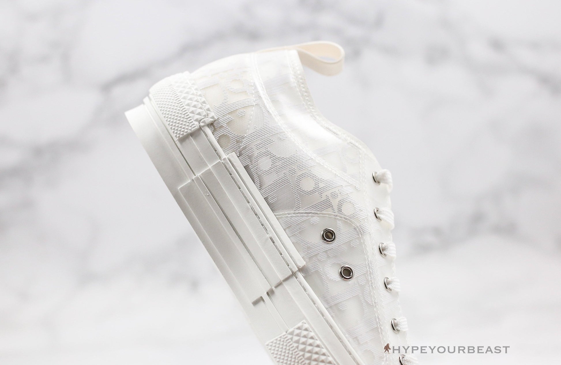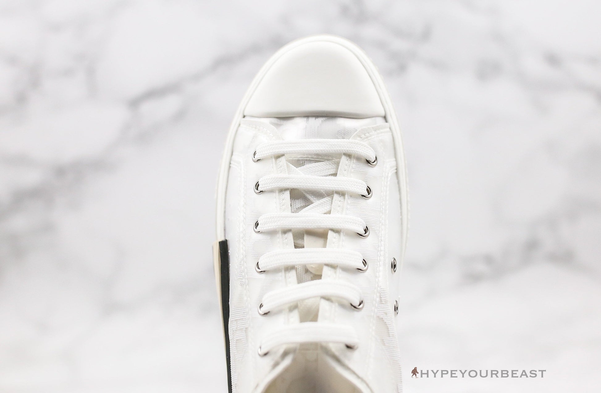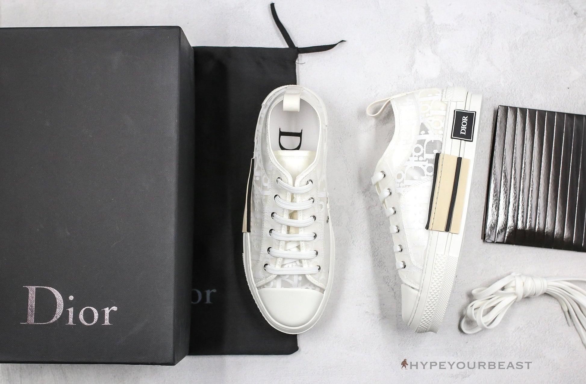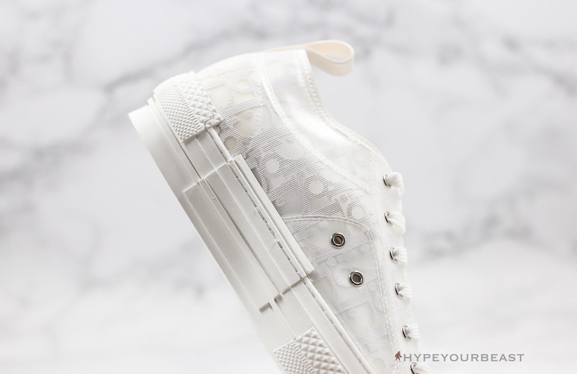 Simple but elegant low-top sneakers are the main feature of Dior B23 Low Oblique White. It showcases a clean and neat white Dior Oblique canvas with a white translucent overlay. It also owns sleeking rubber soles in white hues too while it carries black and white stripes patch in the middle. However, Dior B23 Low White still conveys its all-white feature through the black and white Dior logo at the side. Owning a pair of these luxurious brand sneakers brings your elegance and comfort to the next level.