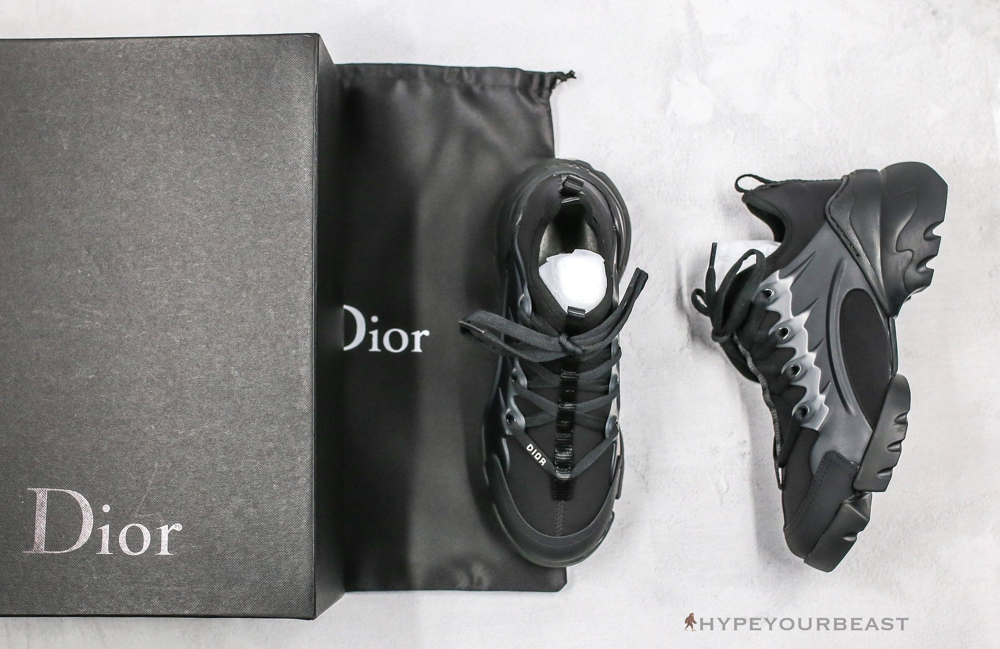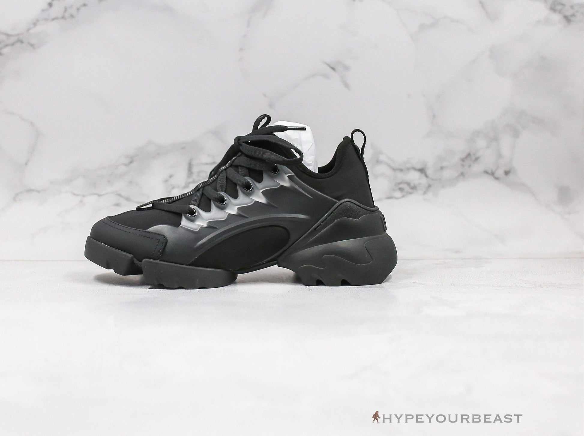 A dashingly contemporary styled pair of all-black sneakers is the highlight of Dior D-Connect Sneakers Black. It was first introduced in the Spring-Summer 2019 runaway show which made another hit due to its captivating shapes and features. Dior D-Connect Sneakers Black was constructed from elastic technical fabric and thick two separate rubber soles. It also includes the fascinating two tongue accents and transparent rubber inserts. Besides that, the pair also brings the iconic DIOR laces while it carries the Grosgrain ribbon. Collect one of these and rock the runway too.