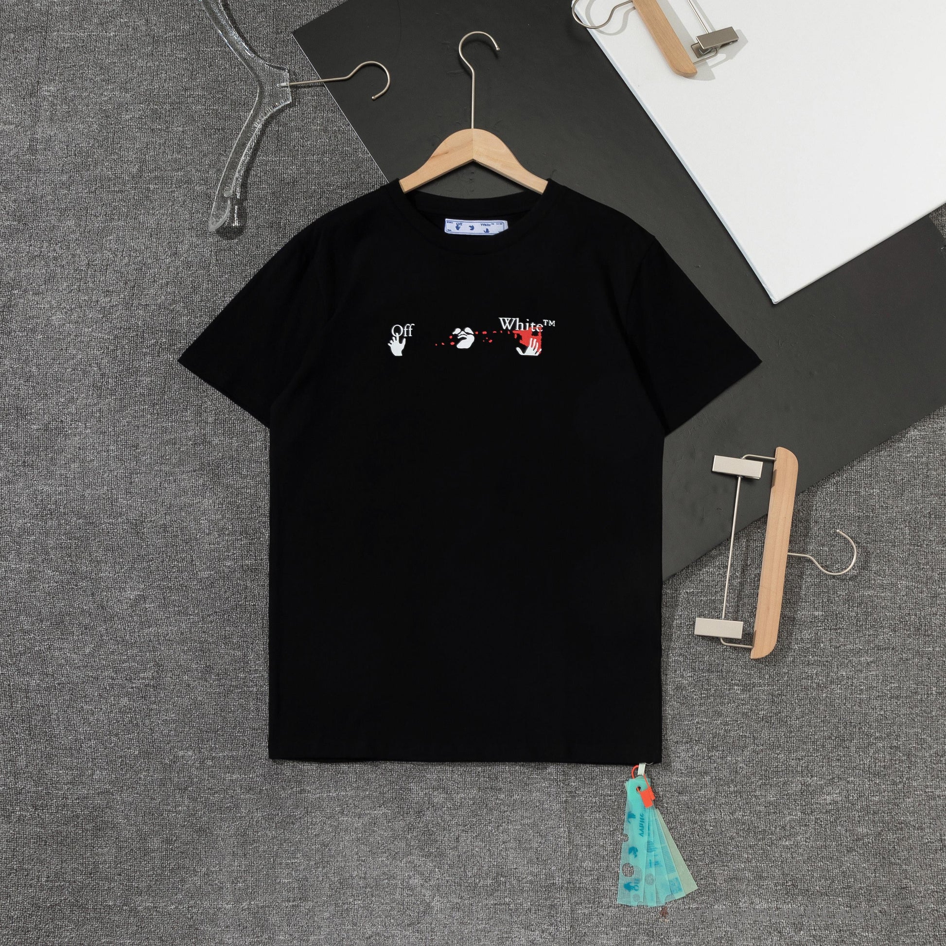 OFF-WHITE Acrylic Hand-Painted Graffiti Pattern Tee Shirt 'BLACK'